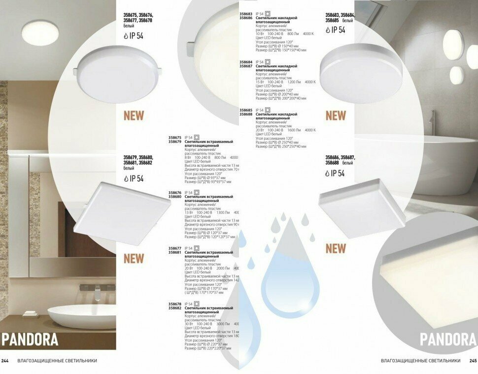 358686 OVER NT21 245 белый Светильник накладной влагозащищенный IP54 LED 4000K 10W 100-240V PANDORA