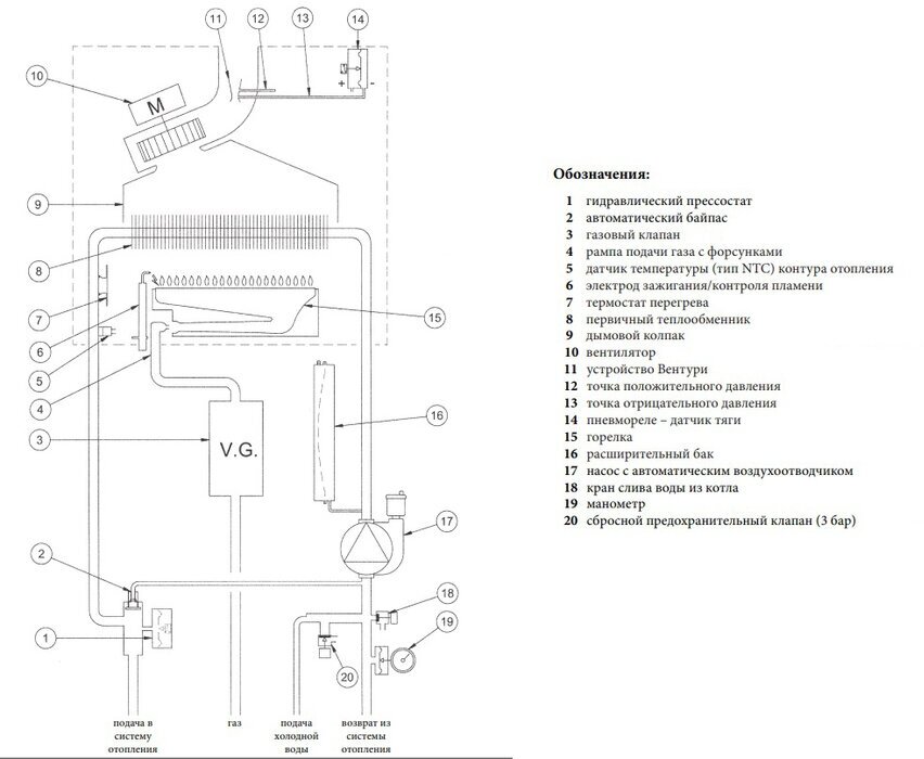 | Защита | газ-контроль, предохранительный клапан, воздухоотводчик |
