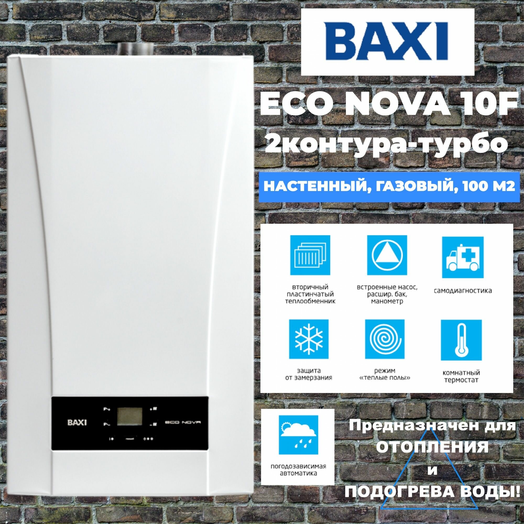 BAXI Eco Nova 10 F, Котел газовый настенный, закрытая камера сгорания, турбированный, двухконтурный (отопление и ГВС), Турция, арт.100021538