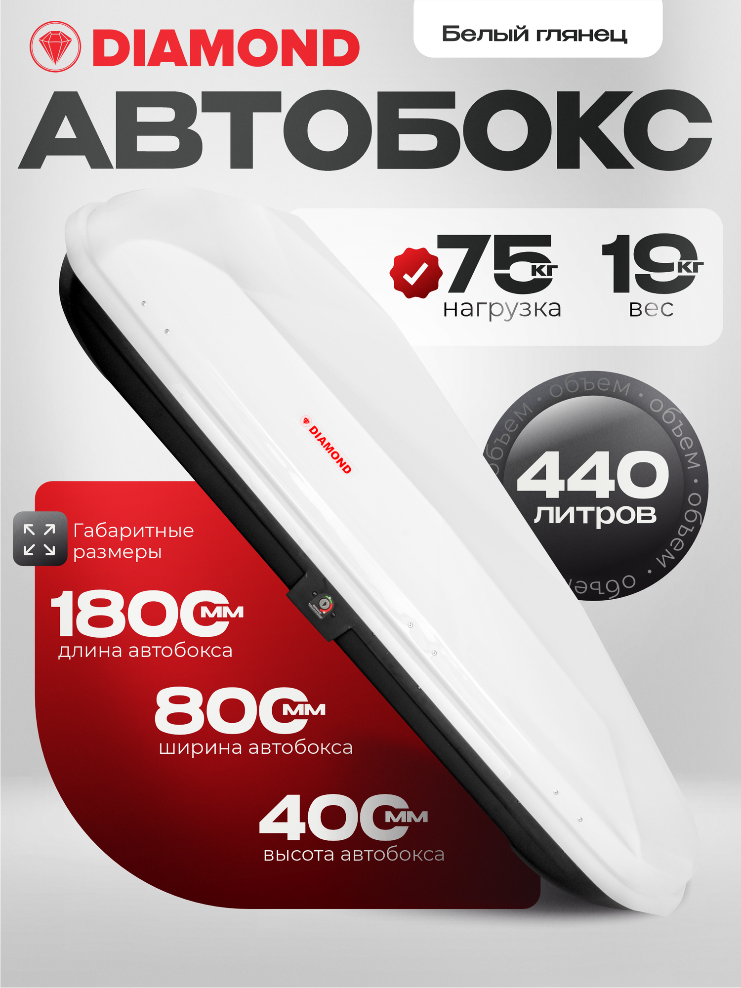 Автобокс DIAMOND 440 л белый глянец интересное: