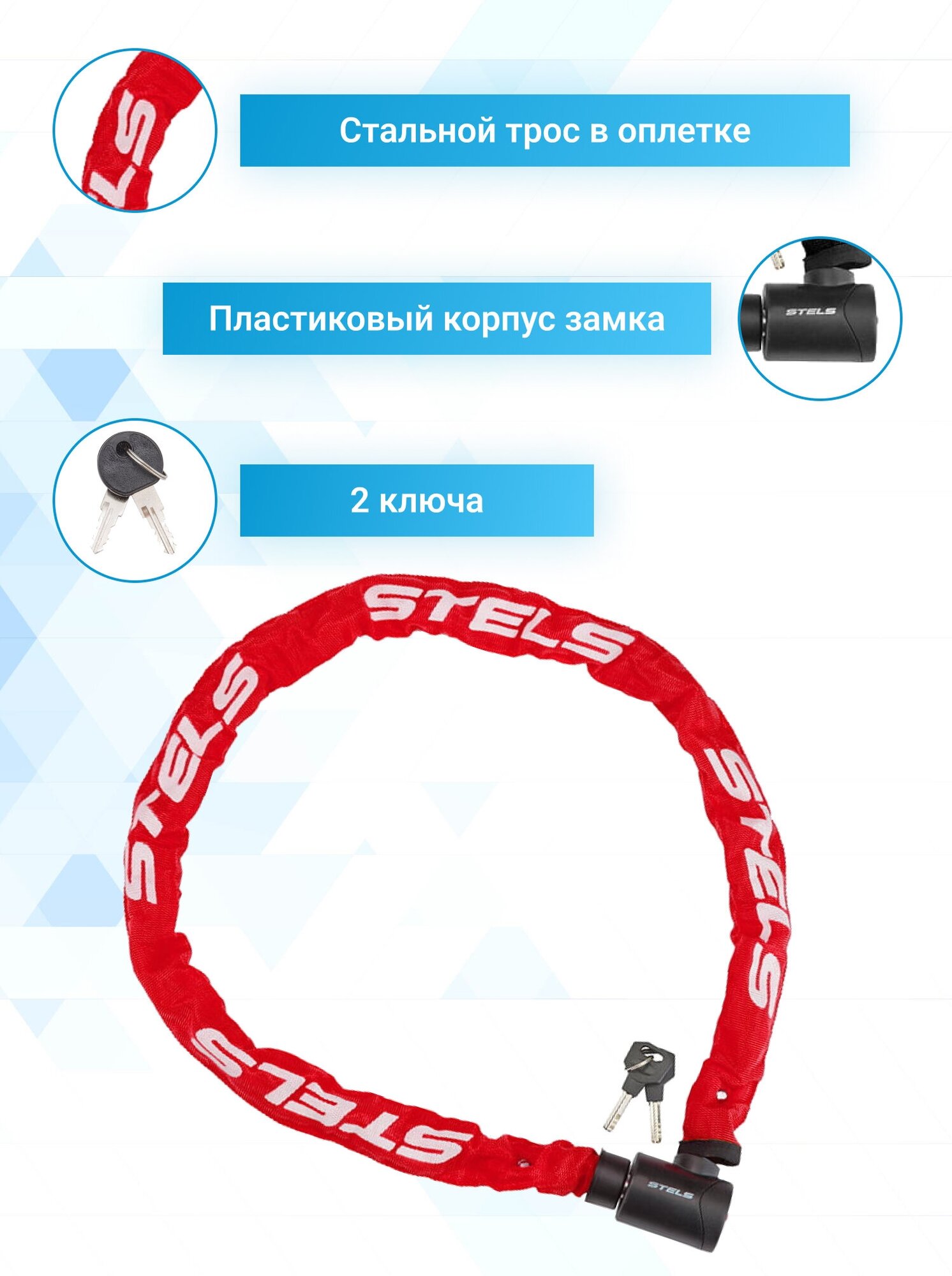 Цепь-замок 85803 цвет: красный 6*1200 540042 Stels интересное: