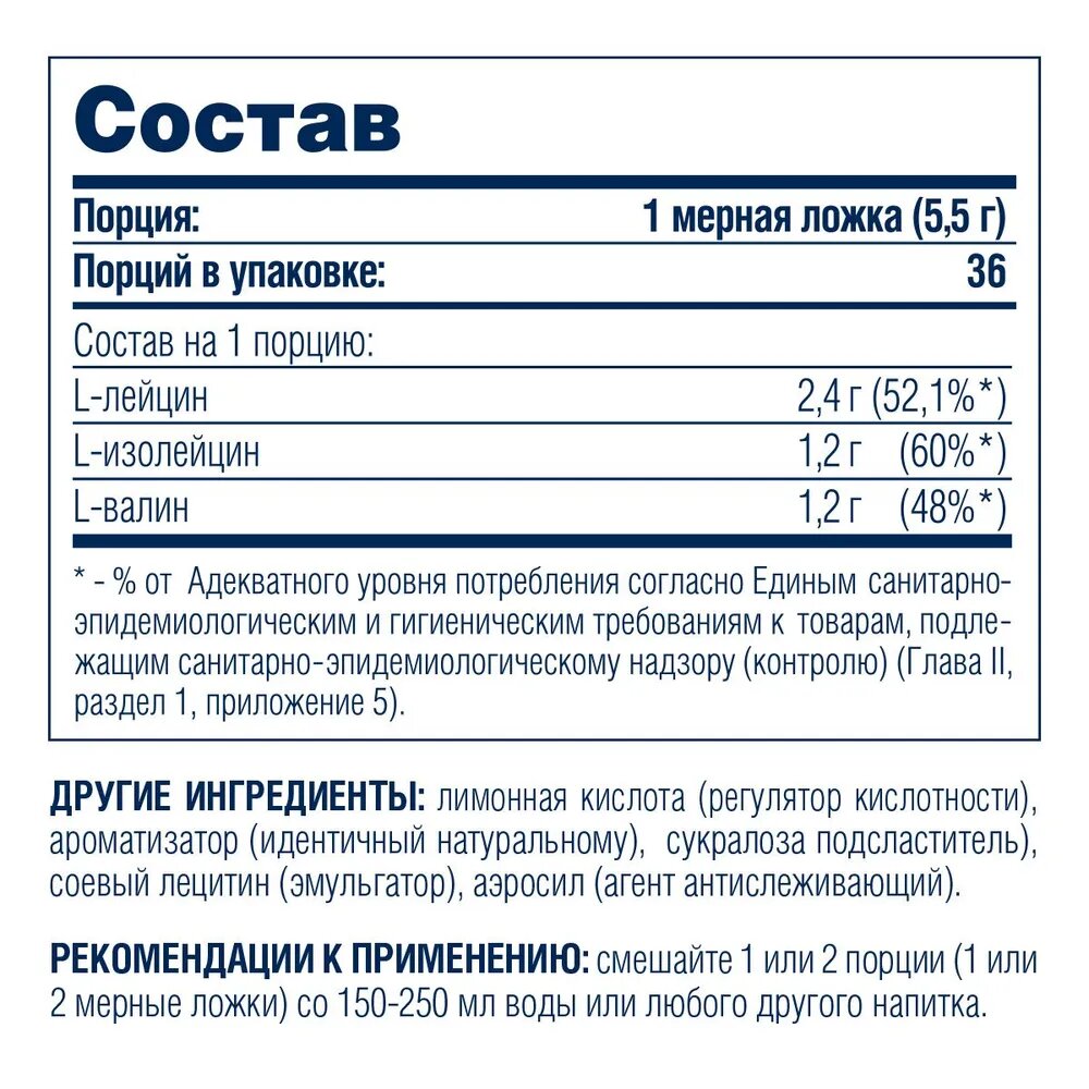 | Тип | BCAA: валин / изолейцин / лейцин |