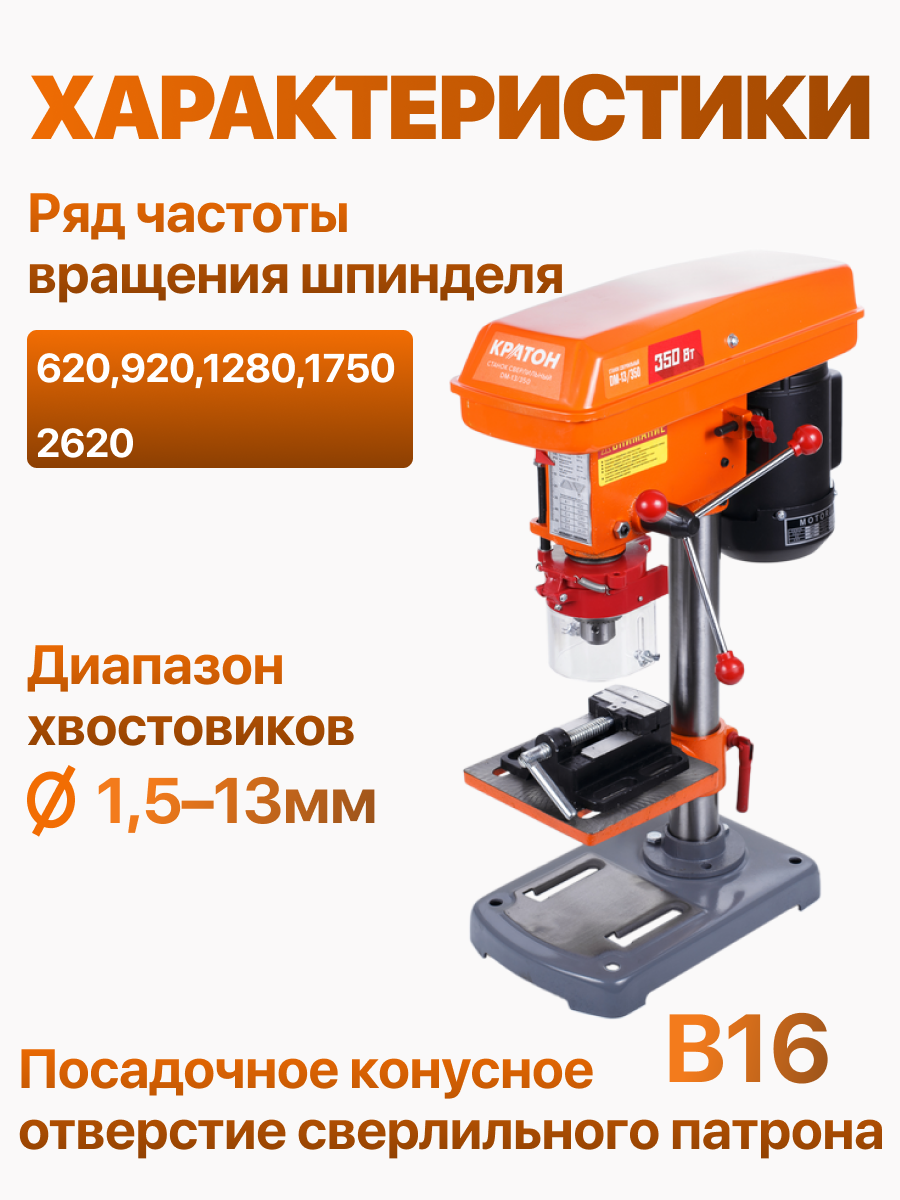 Вертикально-сверлильный станок Кратон DM-13/350 интересное: