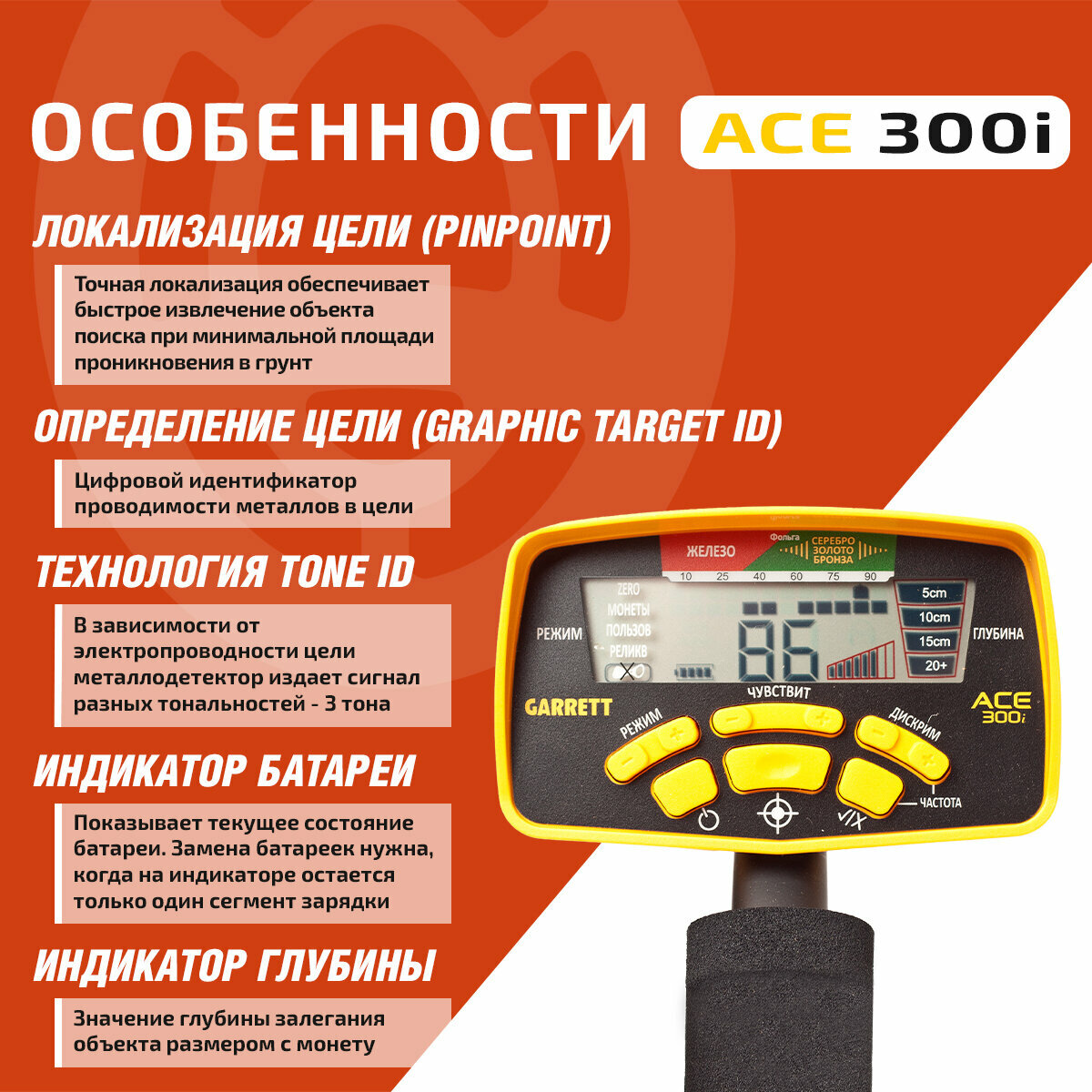 Металлоискатель Garrett ACE 300i RUS комплект 1141850-K