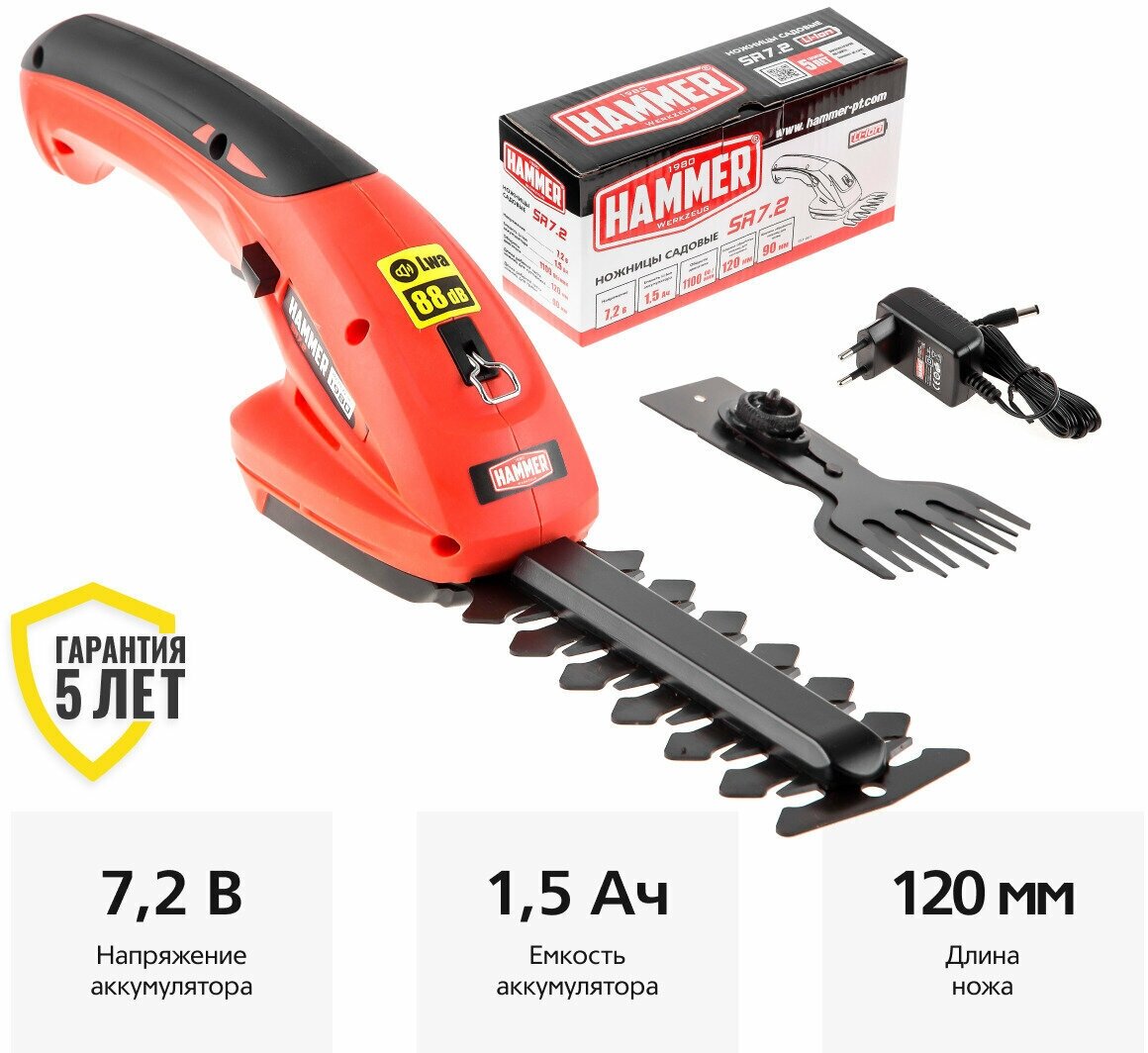 Аккум. ножницы Hammer SR7.2 7.2ВLi-Ion нож для веток 120/8мм, нож для травы 90мм 103-001