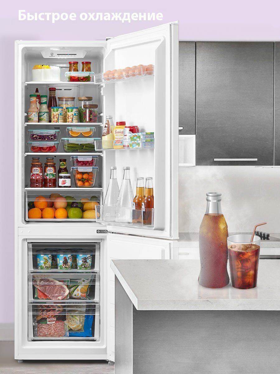 Холодильник Comfee RCB370WH1R, двухкамерный, No frost, белый, GMCC компрессор, LED освещение, перевешиваемые двери интересное: