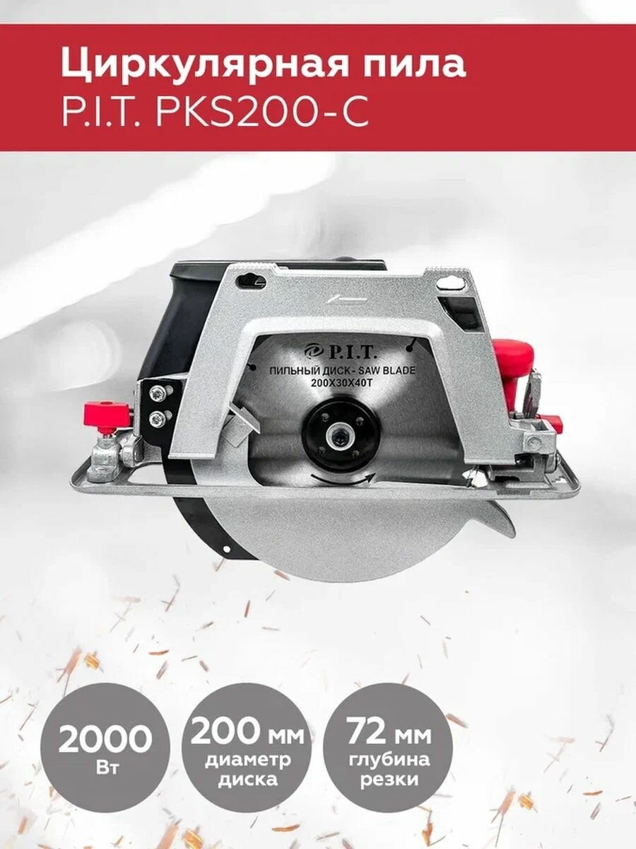 Пила циркулярная P.I.T.РКS200-С (2000 Вт, 200 диск, 5500 об/мин, глубина пропила 65 мм)