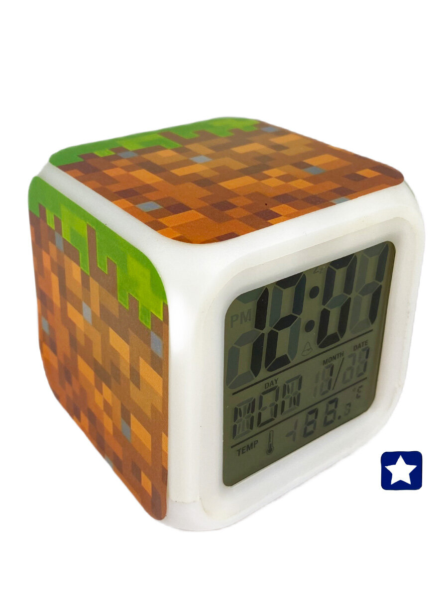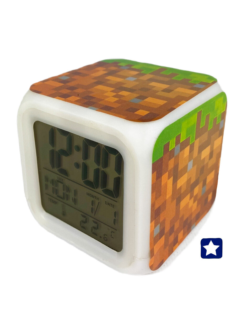 Купить Настольные часы будильник Майнкрафт Блок Земли Minecraft (подсветка, 7,7 см)