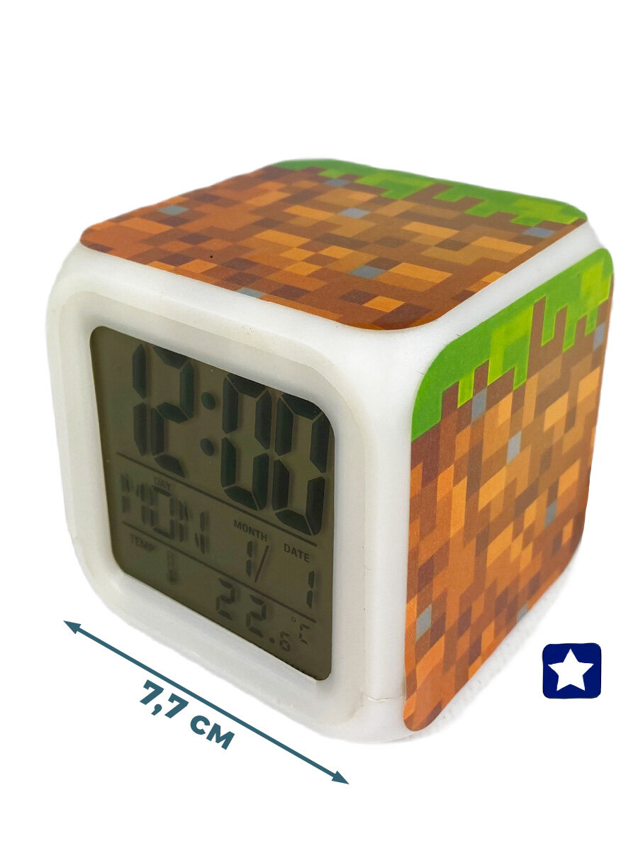 Настольные часы будильник Майнкрафт Блок Земли Minecraft (подсветка, 7,7 см) интересное:
