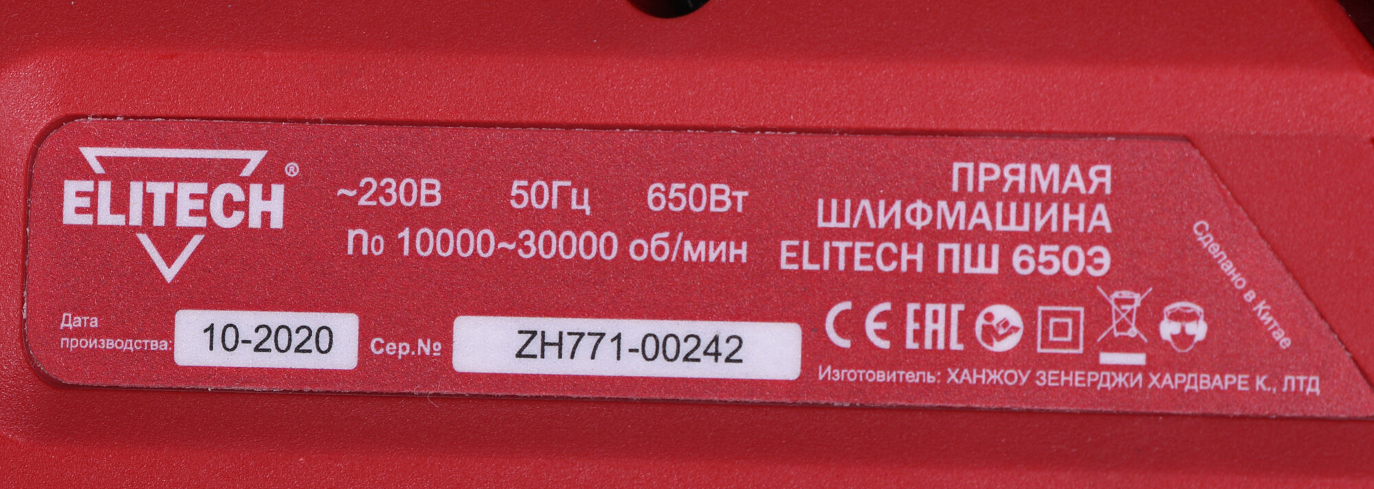 Прямая шлифмашина Elitech ПШ 650Э интересное: