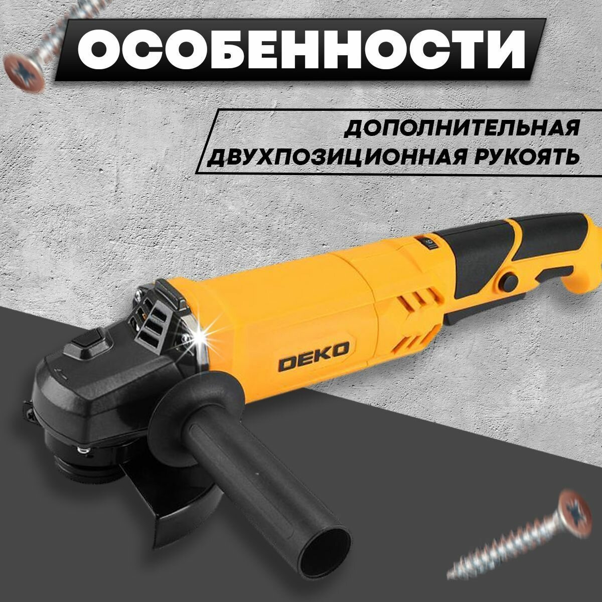 Угловая шлифмашина DEKO DKAG1500, 1500 Вт, 125 мм, 3000-12000 об/мин, регулировка скорости