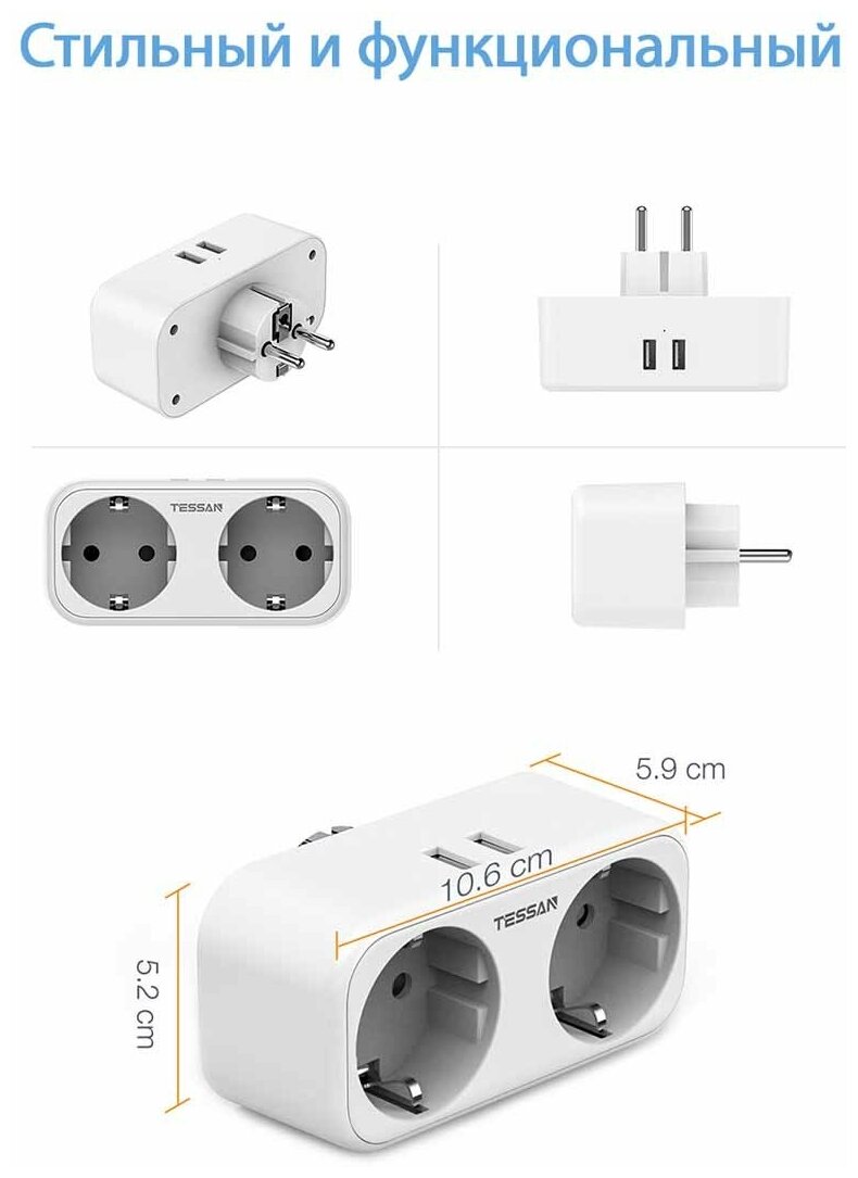СохранитьTESSAN Тессан сетевые фильтры TS-321-DE White Сетевой фильтр с 2 розетками 220В и 2 USB портами интересное: