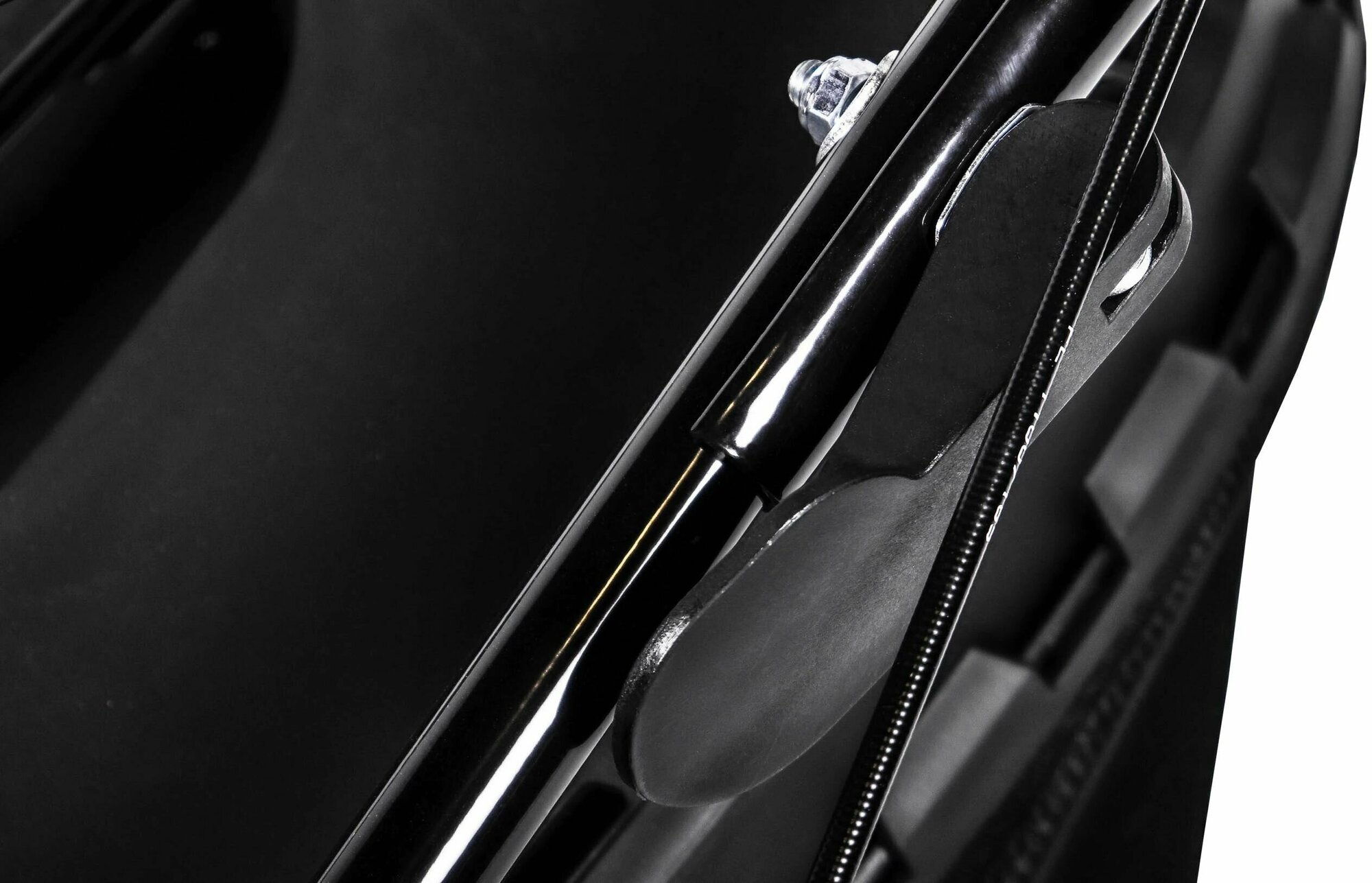 Удобная конструкция крепления мешка для сбора травы. |