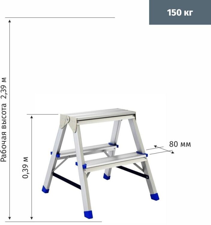 Стремянка двусторонняя 2 ступени, алюминиевая, Россия, Сибртех 97922