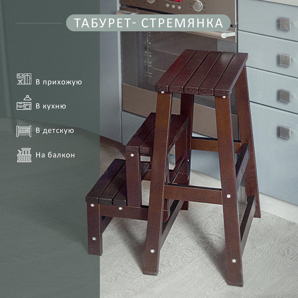 Табурет- стремянка Мебелик раскладной, кухонный, 3 ступени, цвет венге