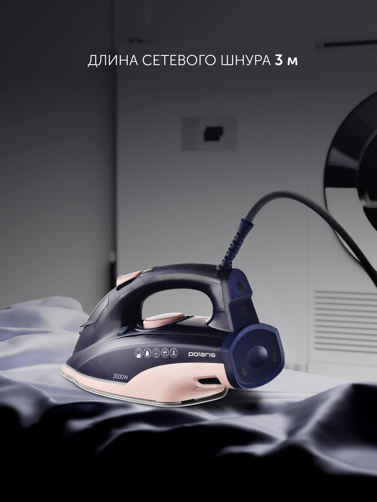 2. Длины шнура мне достаточно, у меня между розеткой и гладильной доской в районе 2 метров 3. Проглаживает все замятости с первого раза, не нужно им по одному месту сто раз водить |