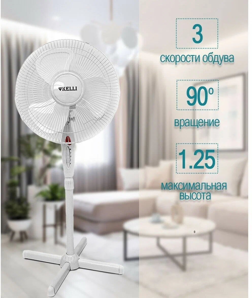 Вентилятор напольный Kelli KL-1016W, белый интересное: