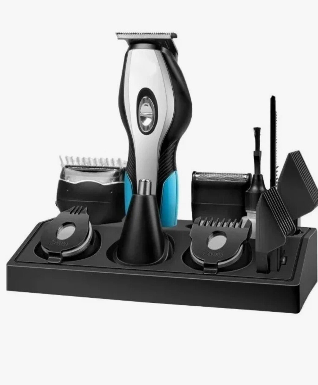 | Дополнительная информация | в комплект входят: подставка, нож для стрижки, триммер для эспаньолки, триммер для ушей и носа, сеточная бритва, бритва для тела, 4 гребневые насадки, расческа, масло, щетка, шнур для зарядки |