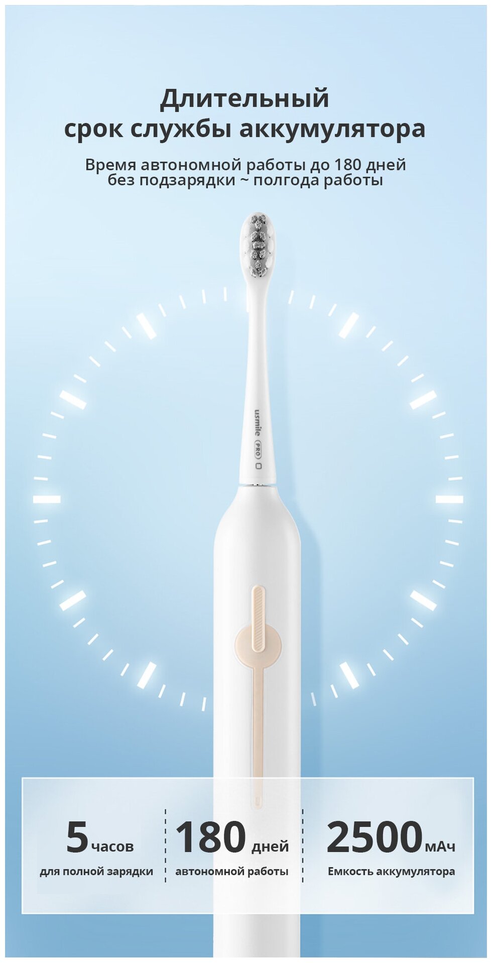 Электрическая зубная щетка usmile P1 белый(ЕАС-сертификат), время автономной работы 180 дней, 3 режима