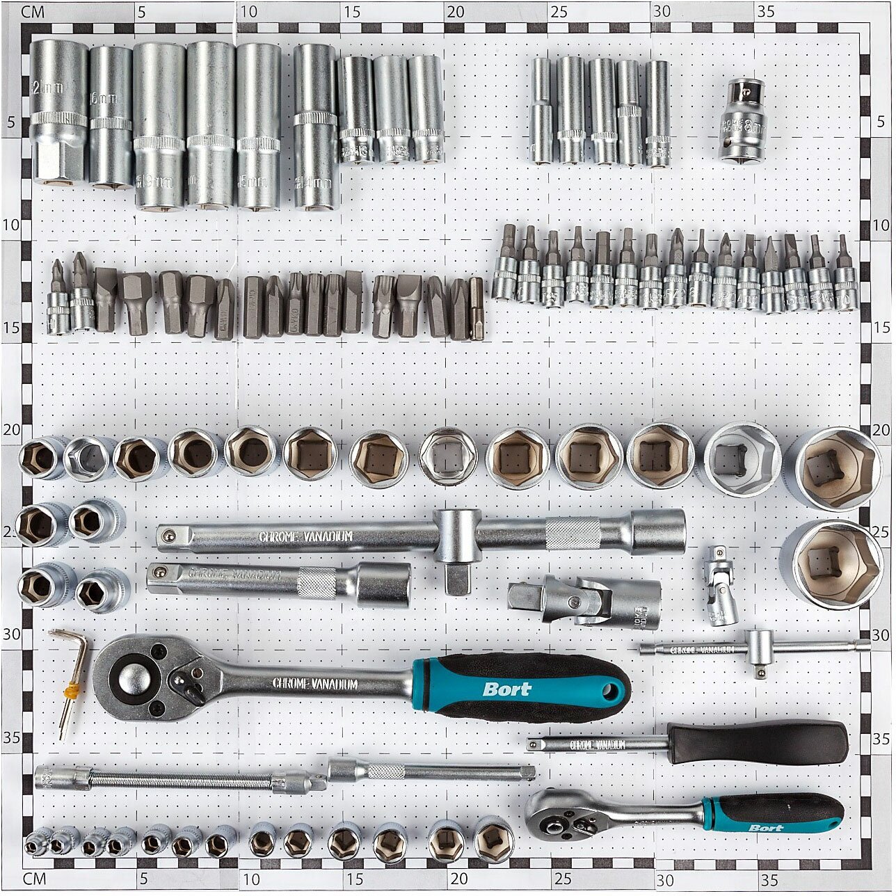 Набор бит и торцевых головок Bort BTK-94, 94 предм., серебристый