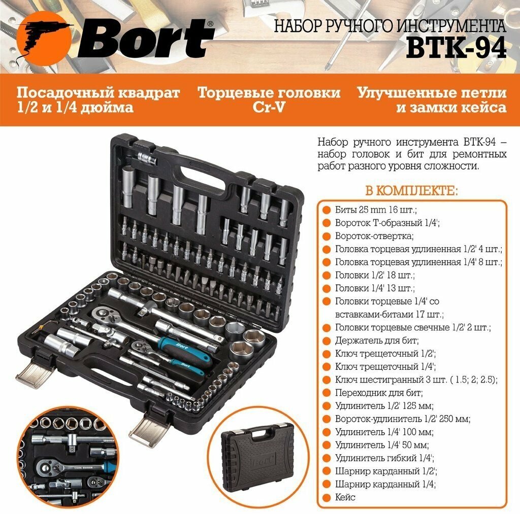 Набор инструмента BORT BTK-94, 94 предмета