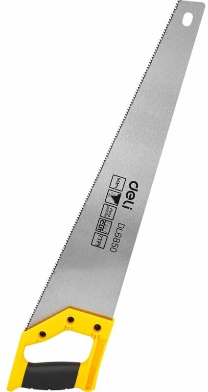 Ножовка (пила) по дереву DELI DL6850 500мм (7 TPI, 2D заточка, закаленный зуб, быстрый рез, пластиковая рукоять)