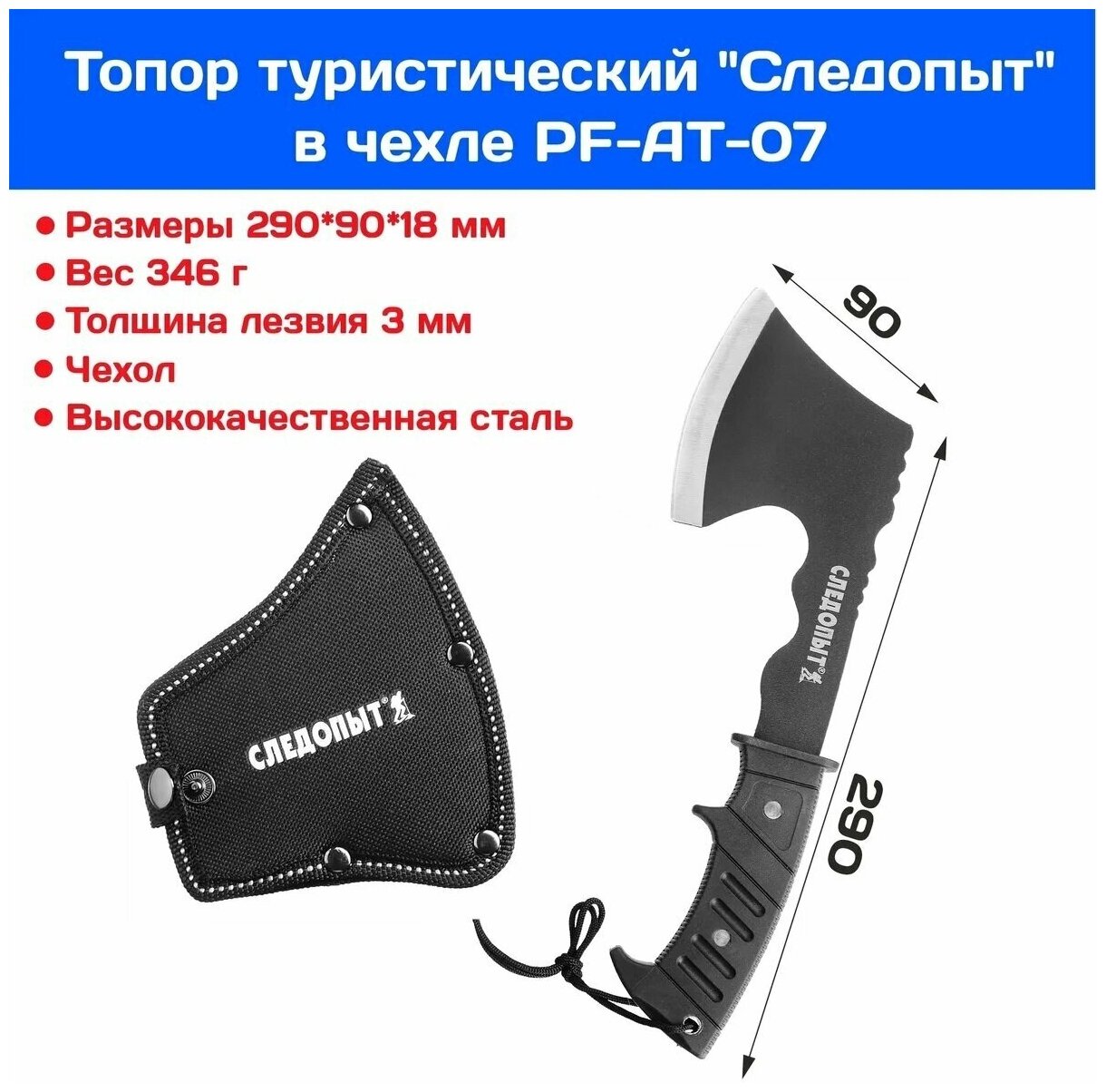 Топор туристический следопыт, 290х90х18 мм, 346 гр, в чехле PF-AT-07