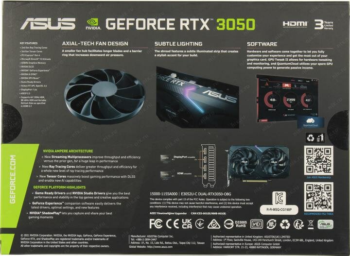 СохранитьВидеокарта Asus DUAL-RTX3050-O8G интересное: