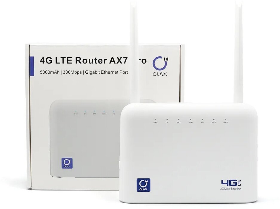 Olax AX7 Pro 3G/4G LTE стационарный роутер с антеннами 2*5dBi + аккумулятор 5000мАч, Ethernet 1000Мбит/сек