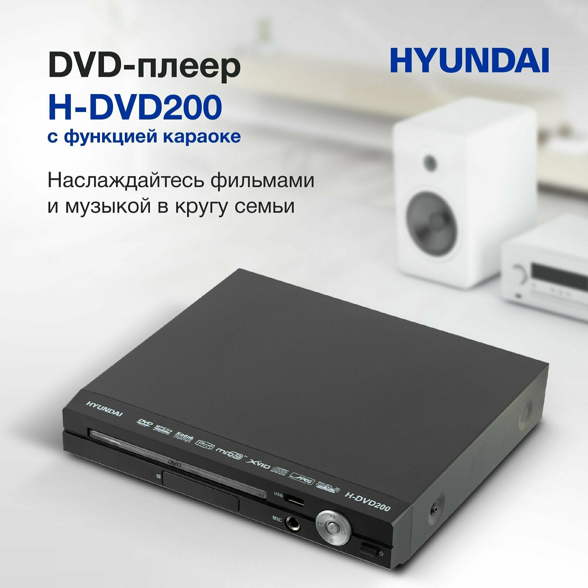 Плеер DVD Hyundai H-DVD200 черный, Караоке, ПДУ