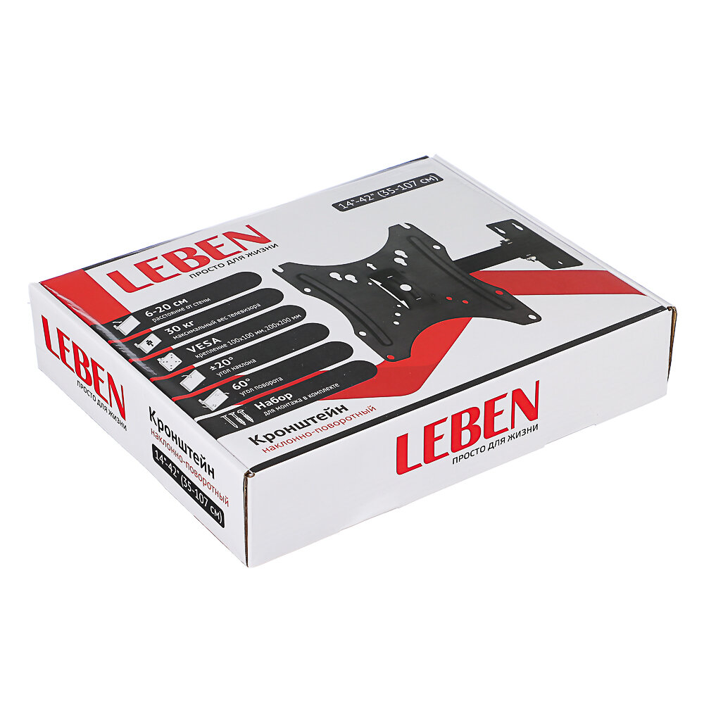 LEBEN Кронштейн для ТВ наклонно-поворотный, 14"-42", до 30кг, 100x100 до 200x200мм, мет интересное: