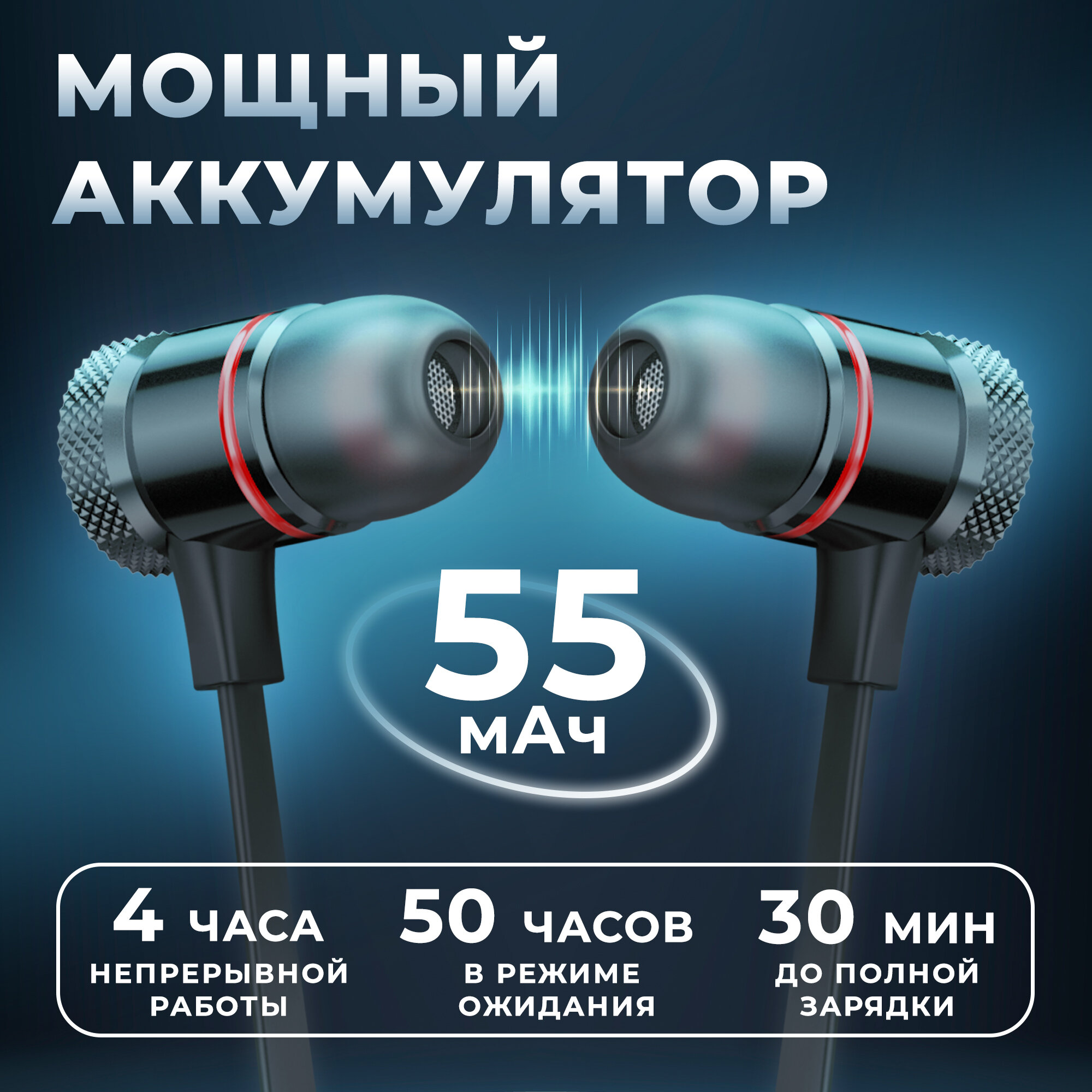 Наушники беспроводные Bluetooth 5.0 на магнитах с микрофоном, AMFOX, AM5, игровая гарнитура для телефона, для смартфона Android, для спорта, черный интересное: