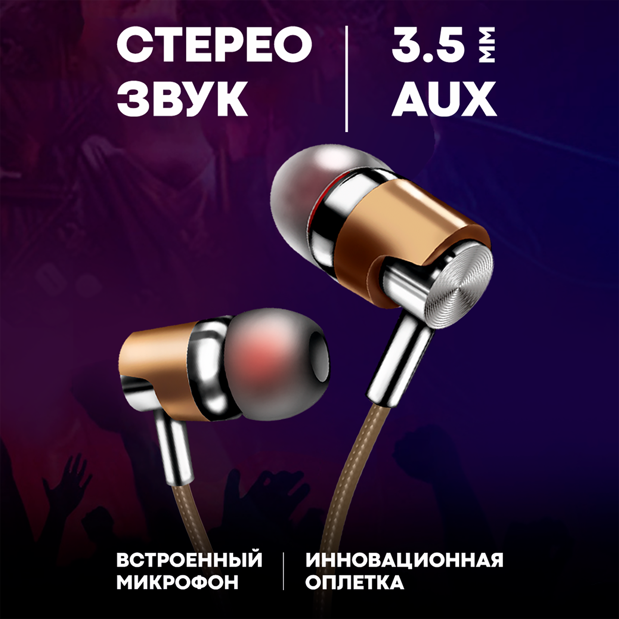 Наушники проводные, AUX, угловой разъем, матерчатая оплетка, наушники с микрофоном, наушники игровые, jbl, sony, золото