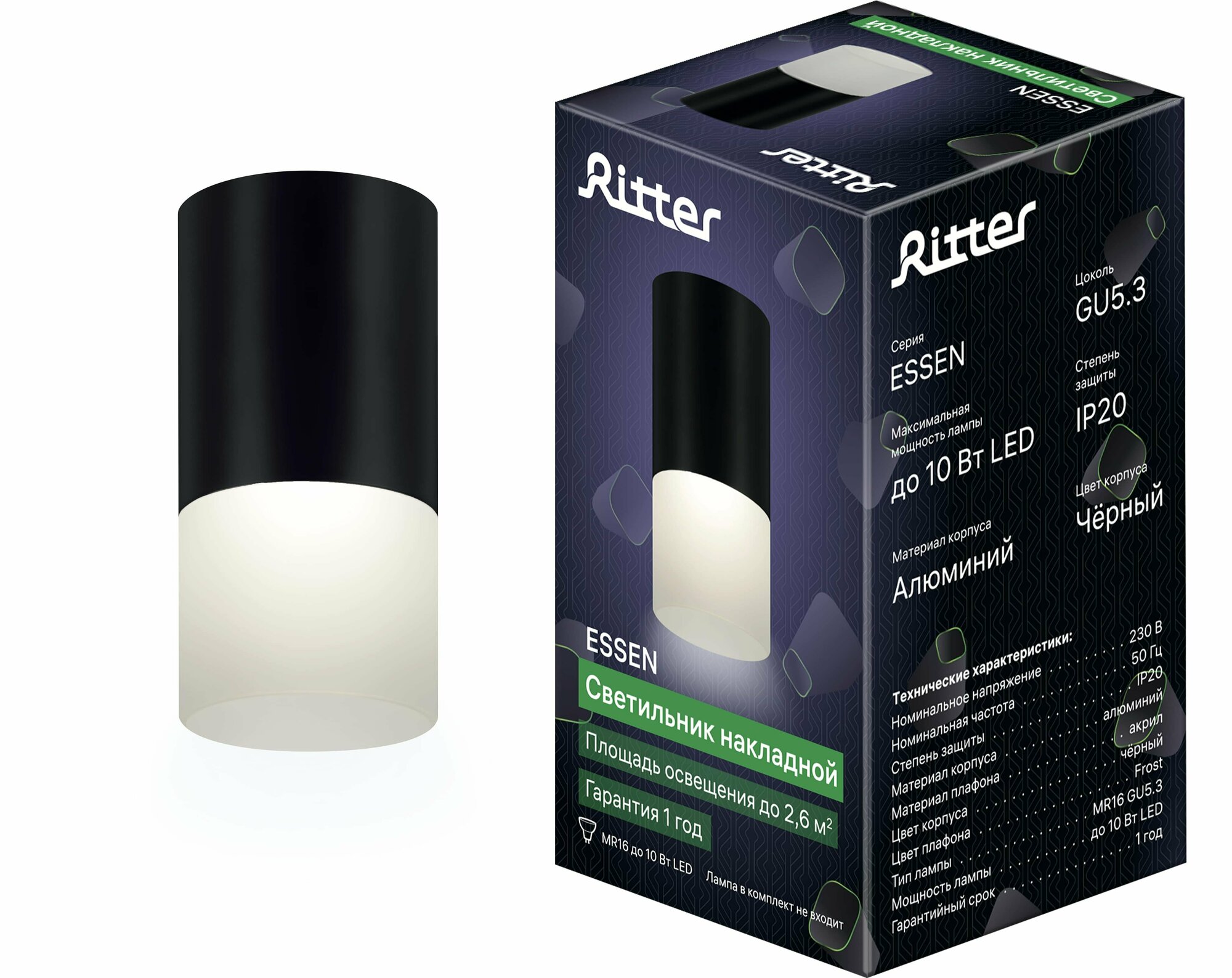Купить Потолочный светильник Essen 10W MR16 чёрный ф65 Ritter 52060 3 .
