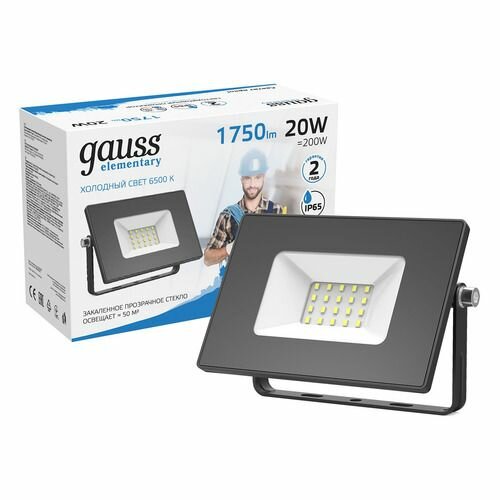 Прожектор Gauss Elementary 20W 1750lm 6500К 200-240V IP65 черный LED