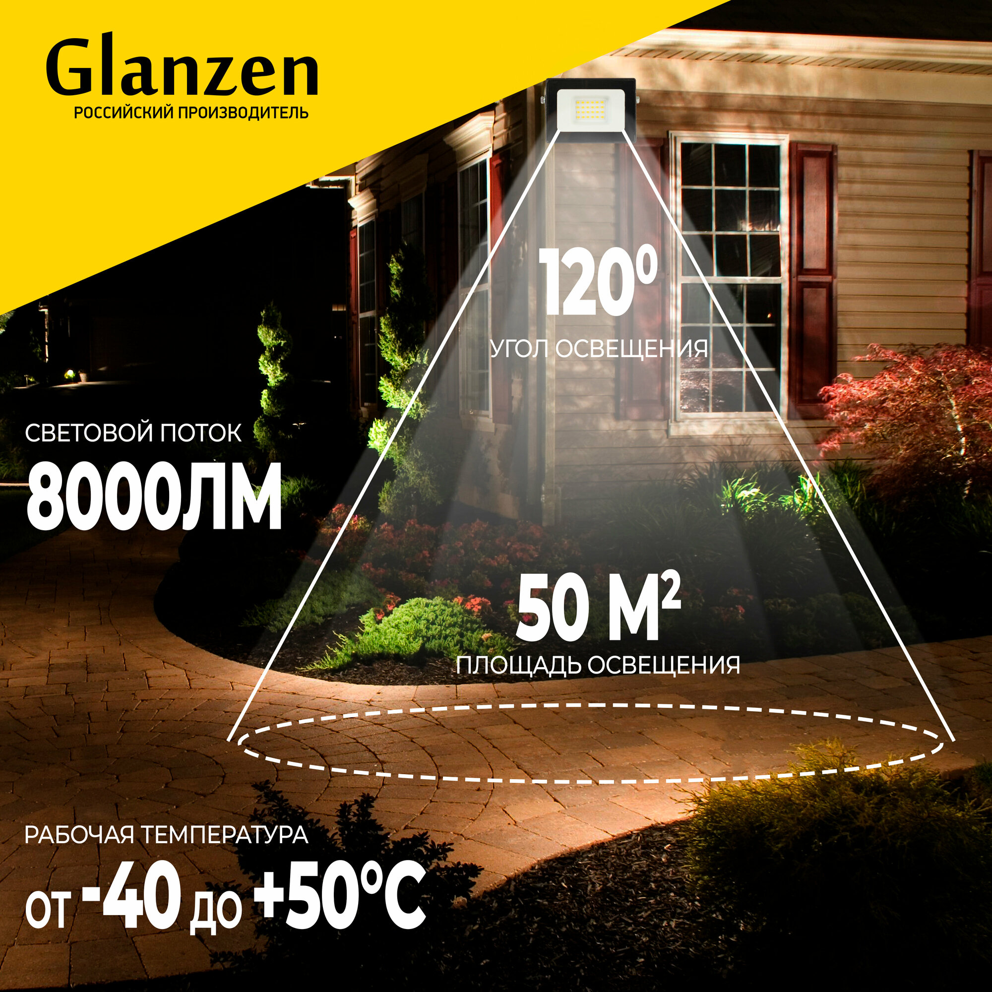 Светодиодный уличный прожектор GLANZEN 70 Вт 6500К IP65 FAD-0007-70
