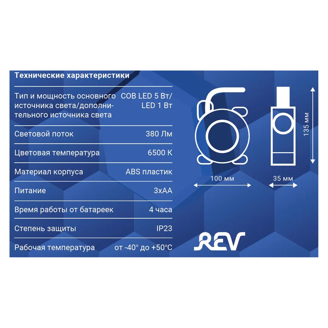 Ritter Прожектор светодиодный ручной с боковым светом 5Вт+1Вт COB LED, 3*AA, 380Лм, IP23, 29126 8