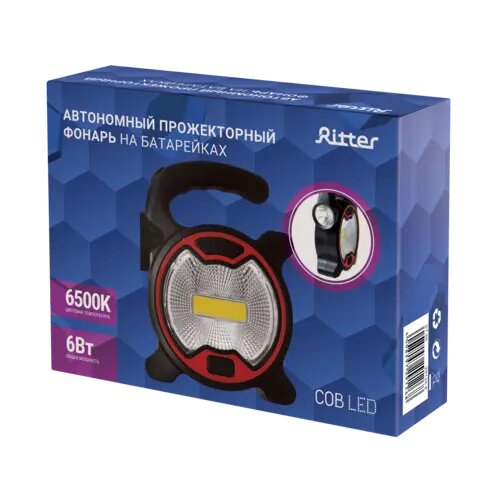 Автономный светодиодный прожектор 5W COB + 1W LED, 3xAA, 300Лм + 80Лм, IP23, Ritter