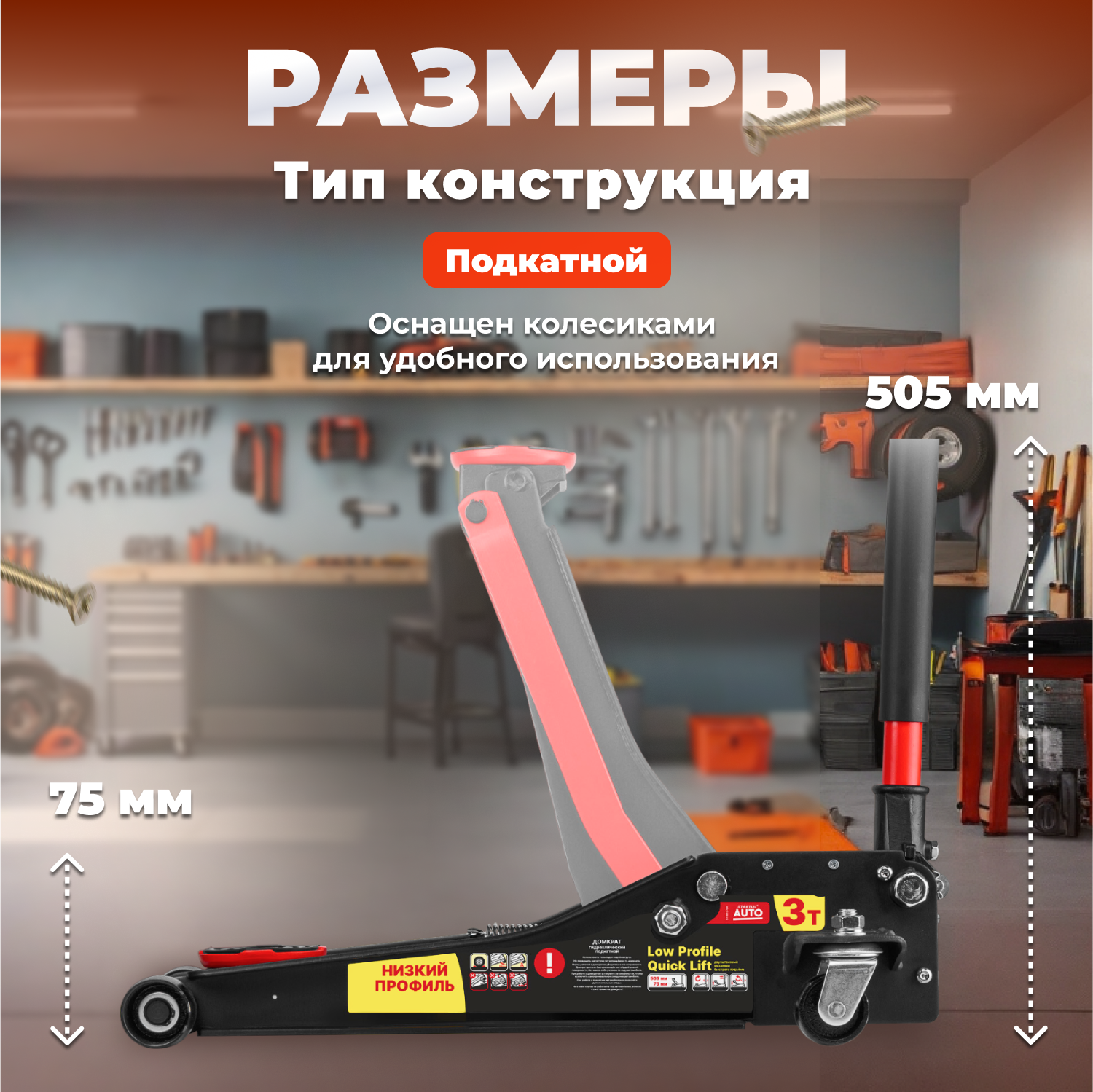 Домкрат подкатной 3т быстрый подъем 75-505мм STARTUL AUTO (ST8013-04) (h min 75мм, h max 505мм, Quick LIFT, низкопрофильный)