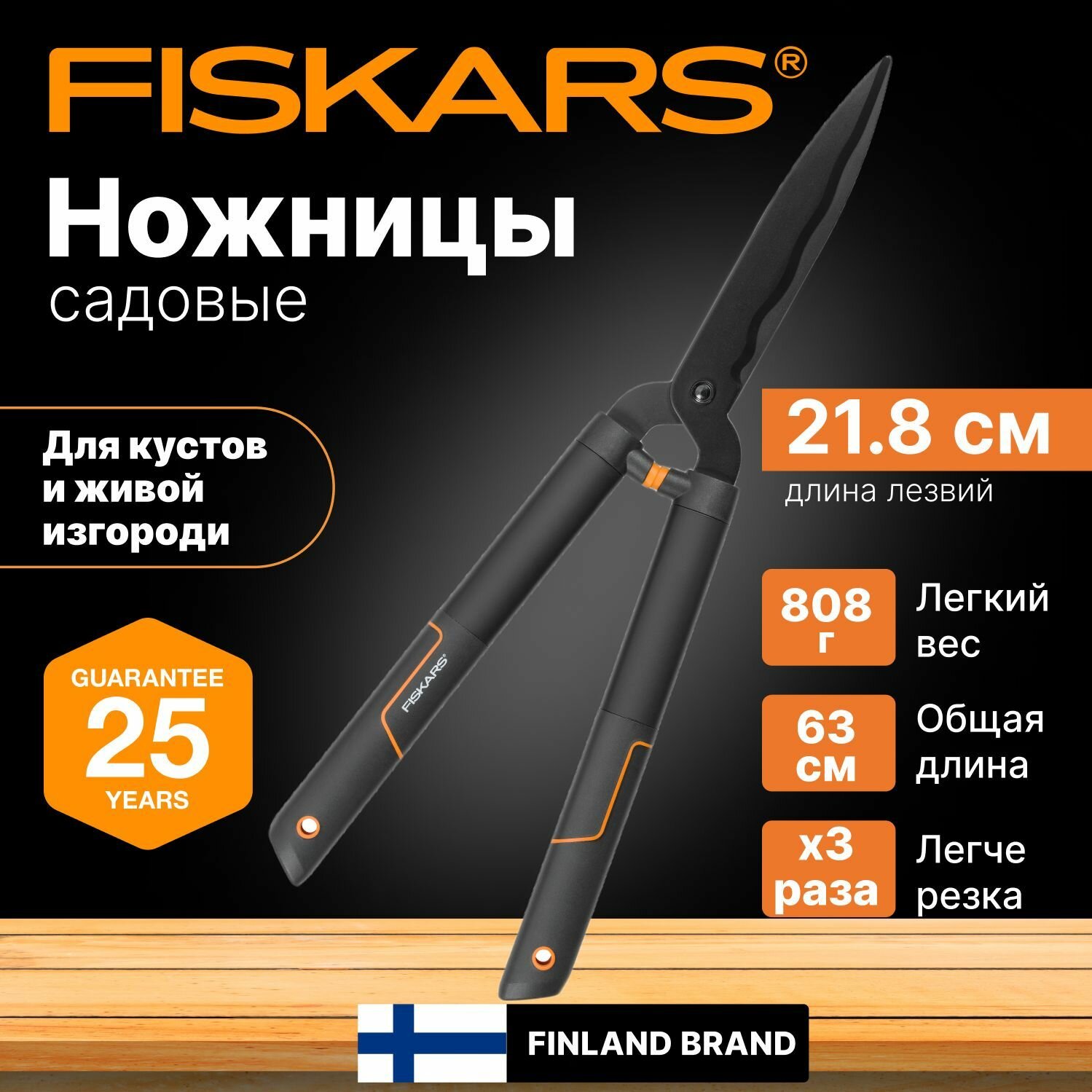 | Отзыв: | Классные ножницы, особенно для стрижки кустов. Fiskars всегда оправдывает марку! Пользуемся давно, все устраивает. Удобные ручки, хорошая заточка, лёгкий вес. |
