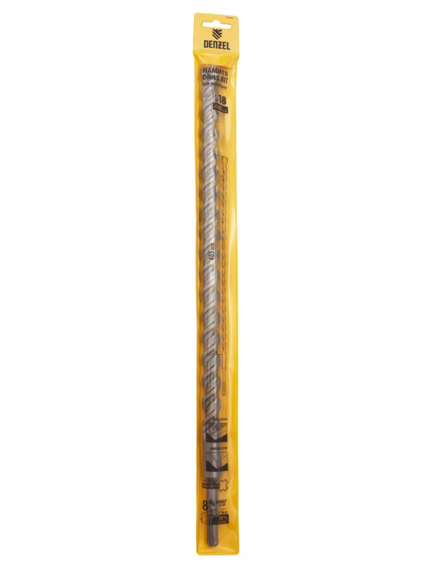 Бур по бетону, двойная спираль, три пылеотводящие кромки, 18 x 600 мм DENZEL