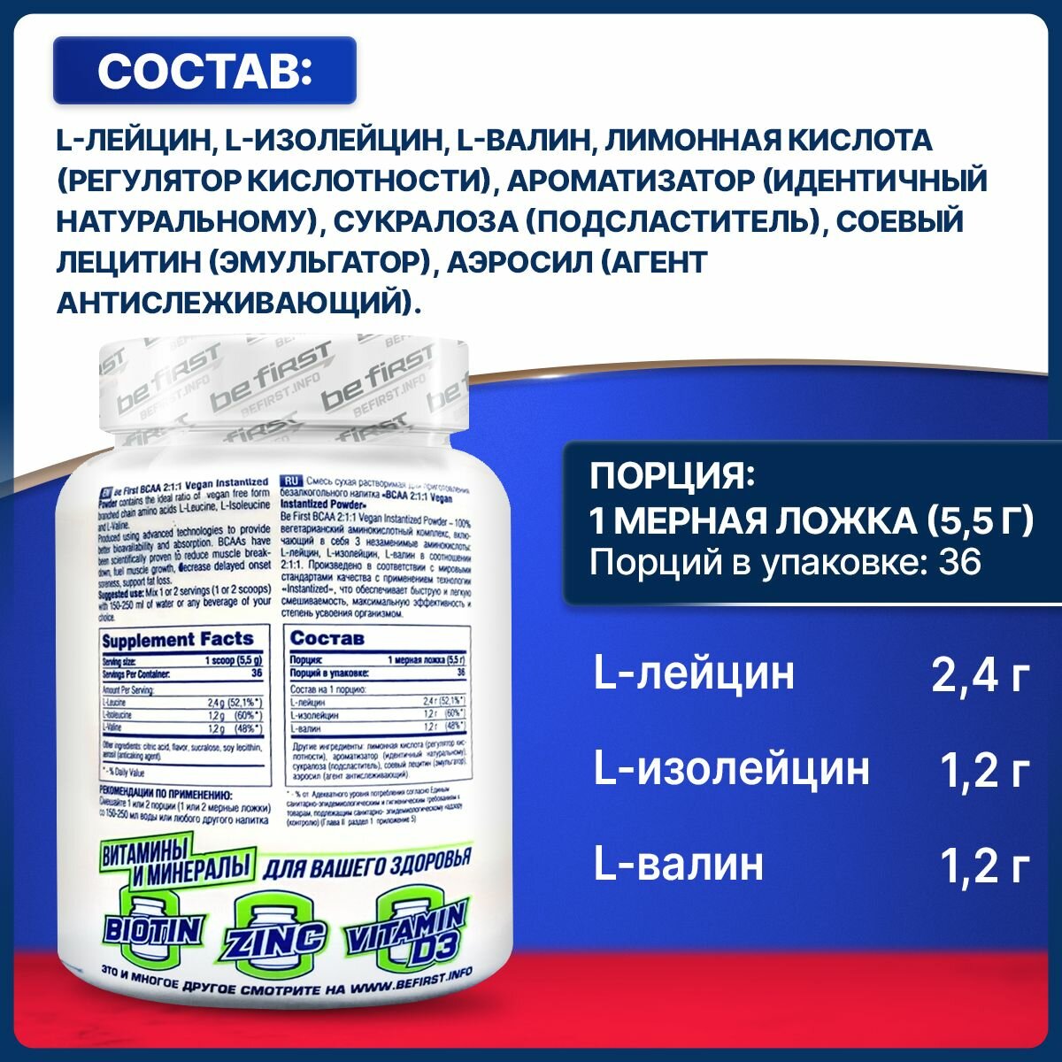 BCAA Be First BCAA 2:1:1 VEGAN instantized powder 200 гр, вишня интересное: