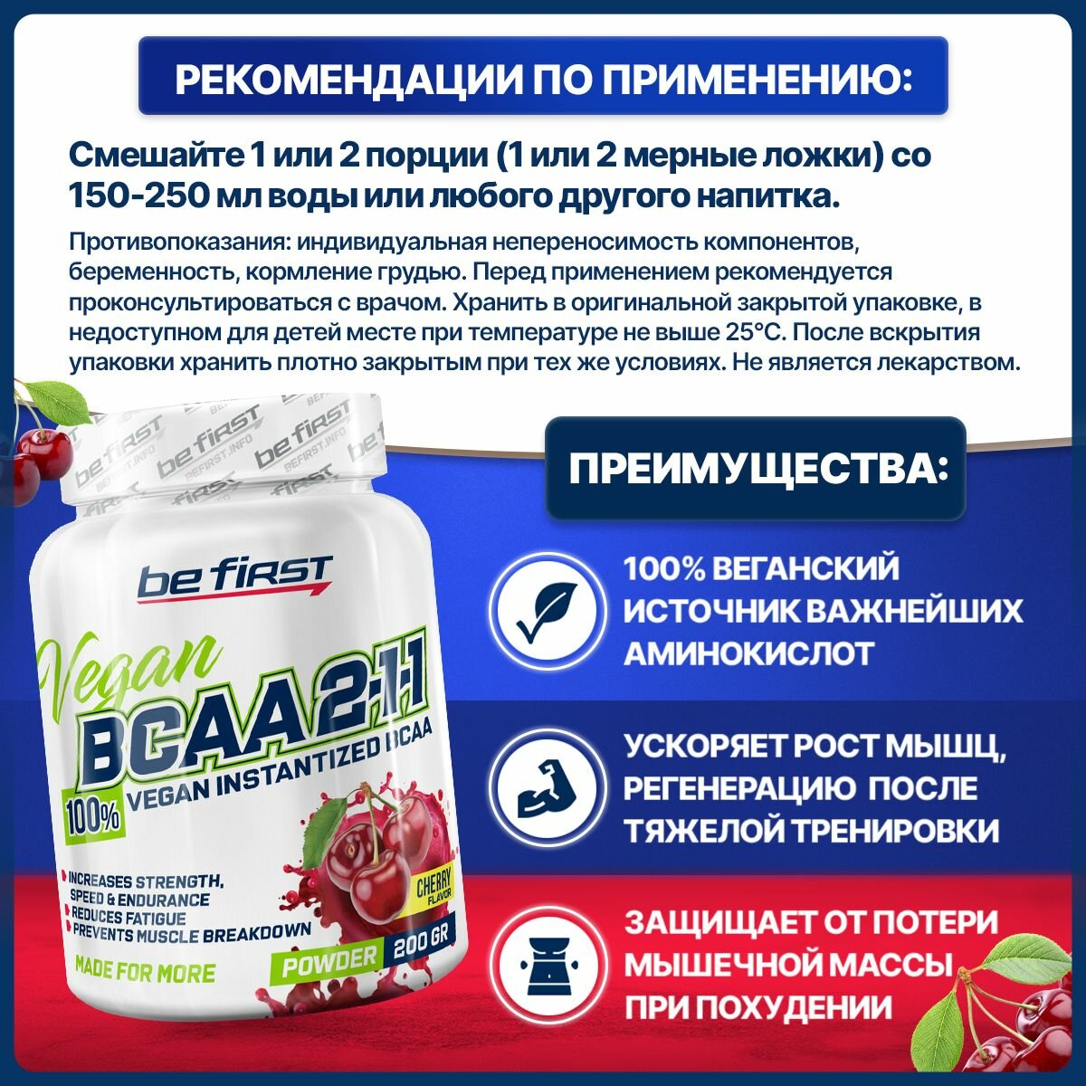 BeFirst, BCAA 2:1:1 VEGAN instantized powder, 200г (Вишня)