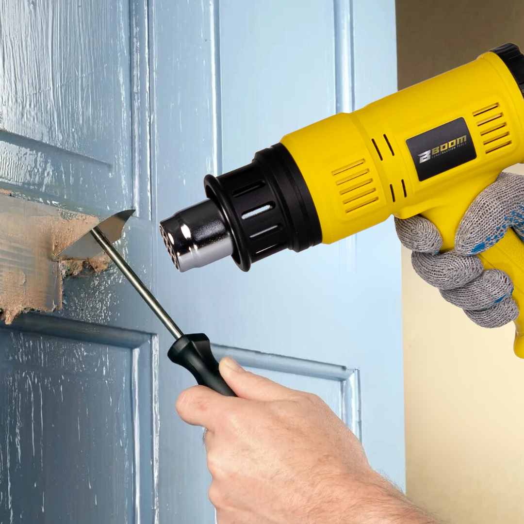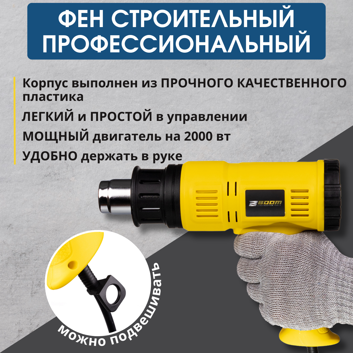 Фен строительный с насадками, BOOM TOOLS, паяльный термопистолет профессиональный для обработки горячим воздухом поверхностей и материалов