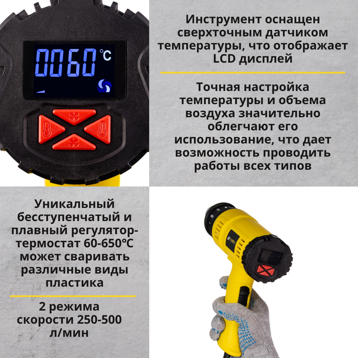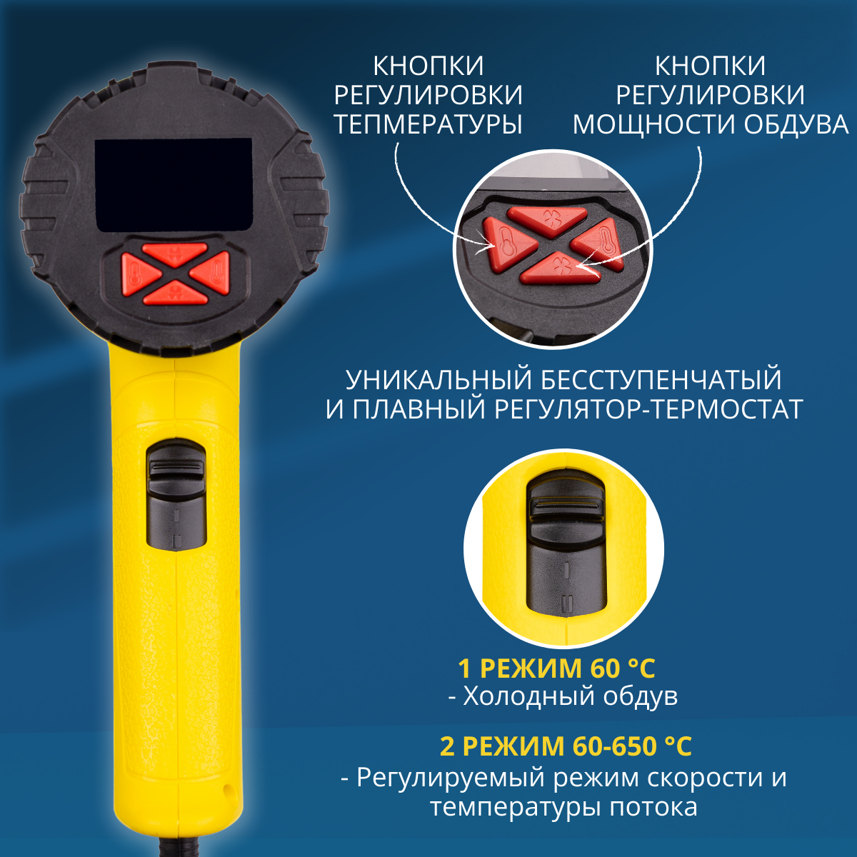 Фен строительный с дисплеем и насадками. BOOM TOOLS. Паяльный фен Boom Hot Max 220V-230V 2000W
