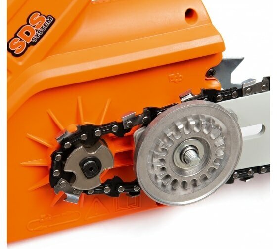 | Минусы: | За счет поперечного расположения мотора корпус широкий, иногда мешает при распили сваленных веток. Для стандартного распила все отлично. |