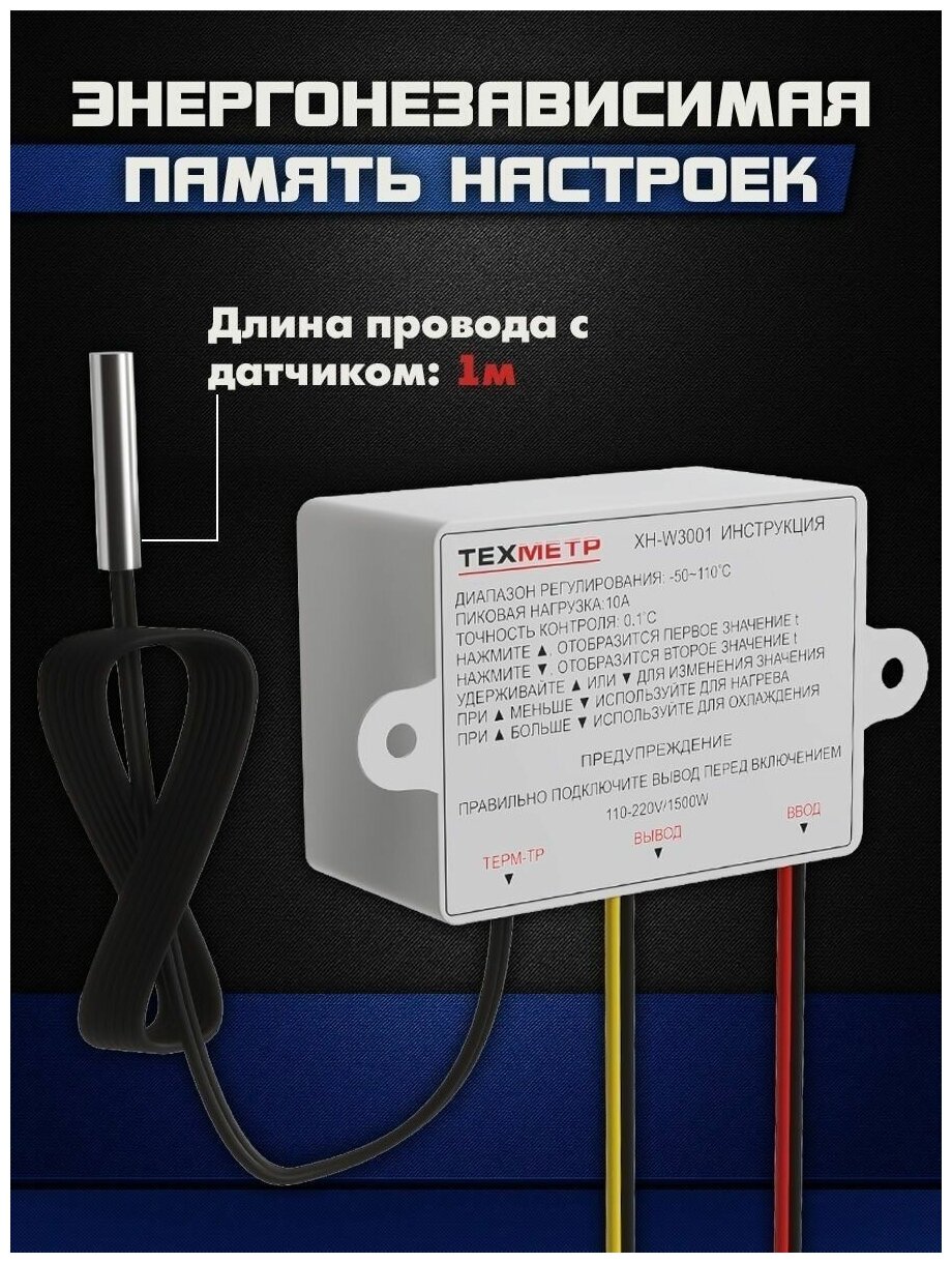 Терморегулятор термостат контроллер температуры техметр XH-W3001 110-220В 1500Вт -50+110С TRW3001 2 шт (Синий) интересное: