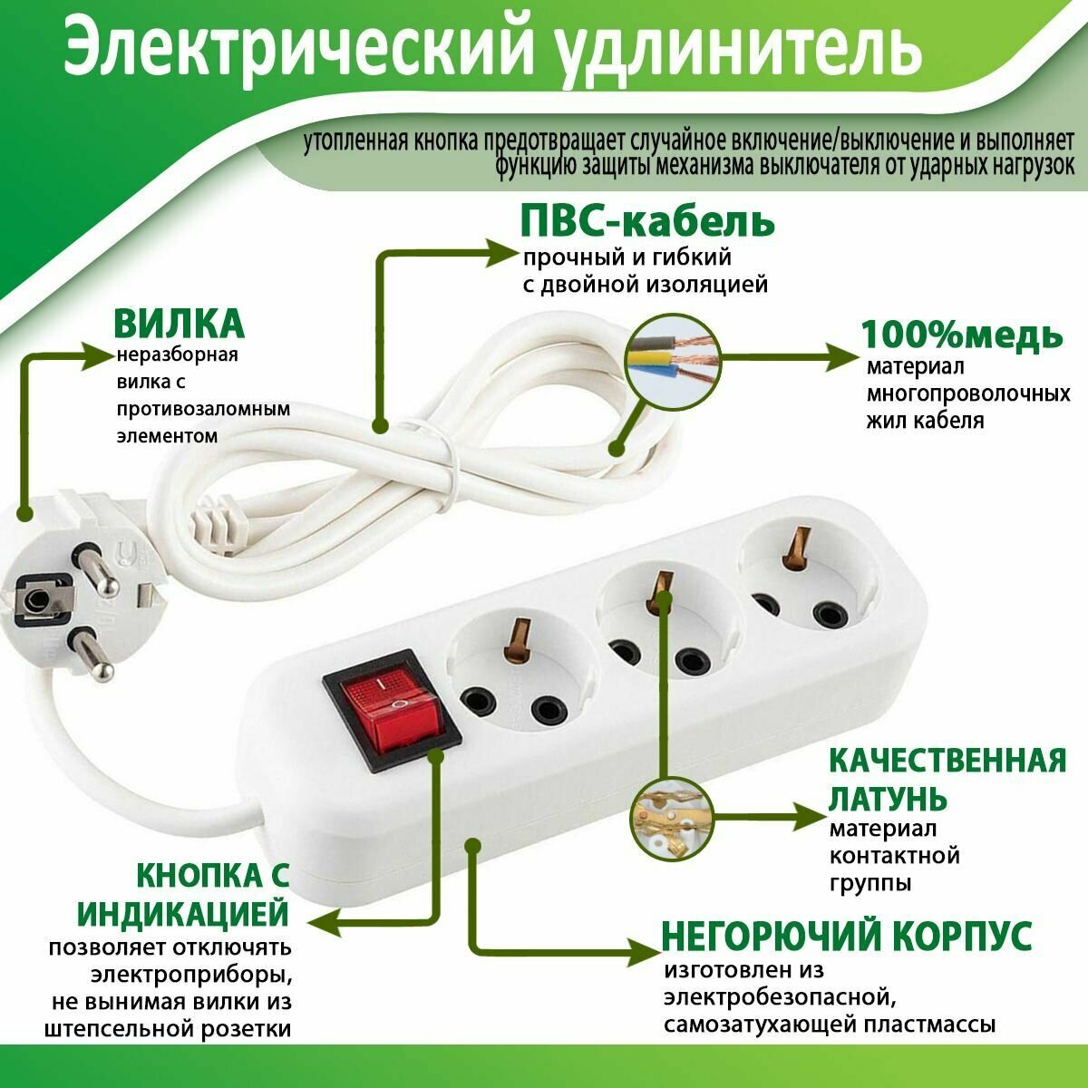 СохранитьУдлинитель с выключателем IEK У03К-выкл, ПВС 3 x 1 мм², с заземлением, 3 розетки, 5 м, белый интересное: