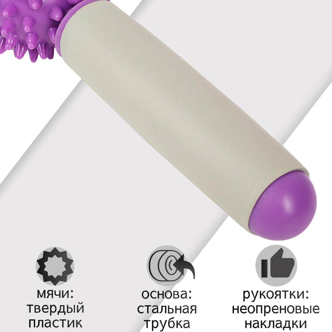 СохранитьРучной МФР массажер механический М3, 5 массажных мячей на палке, фиолетовый (ролик для тела, для спины и шеи, ног, антицеллюлитный) STRONG BODY интересное: