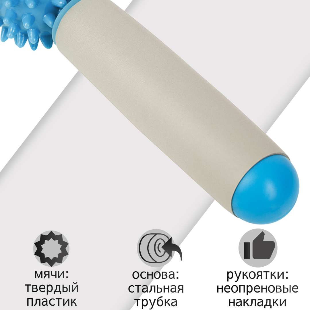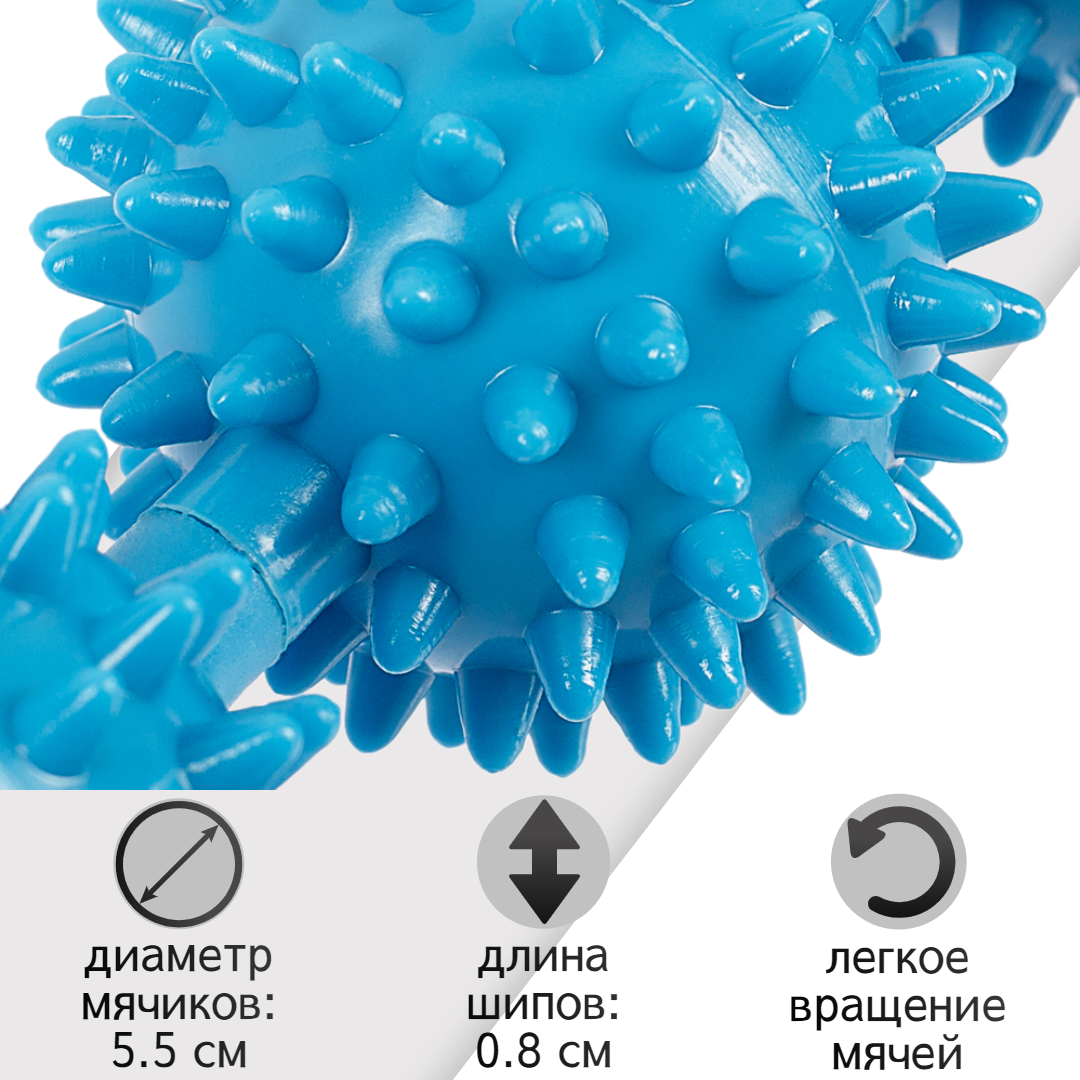 Купить Ручной МФР массажер механический М3, 5 массажных мячей на палке, синий (ролик для тела, для спины и шеи, ног, антицеллюлитный) STRONG BODY